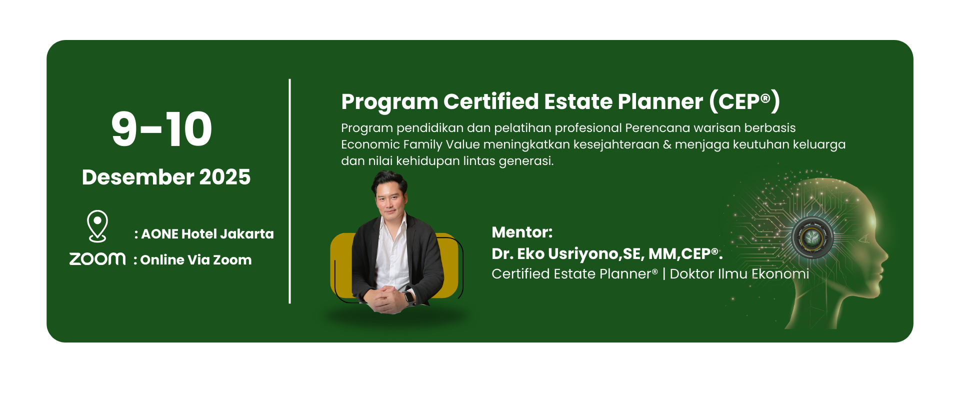 Solusi Financial Planning, Wealth Planning, Retirement Planning, dan Estate Planning berbasis Life-Integrated Wealth Planning serta Perencanaan Warisan berbasis Economic Family Value untuk meningkatkan kesejahteraan Keluarga Indonesia.